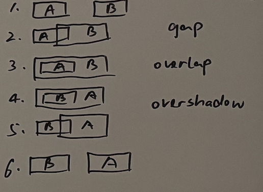 A overlaps B